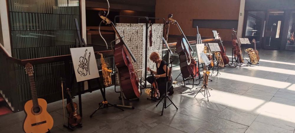 For this exclusive event, Shine Music Rental curated a display featuring an array of wind, brass and string instruments, turning the hotel’s sophisticated event space into an artistic masterpiece. Saxophones, trumpets, and cellos were arranged in a sculptural installation, adding a refined, creative edge to the décor. The golden tones of the instruments shimmered under the venue’s ambient lighting, perfectly complementing the grandeur of the Torre Melina Gran Meliá’s luxurious setting.